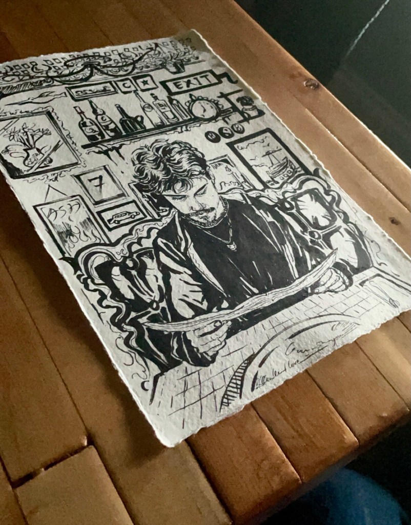 Here’s a drawing I made when I was in Vancouver Island. I am measuring places by what art I made there.